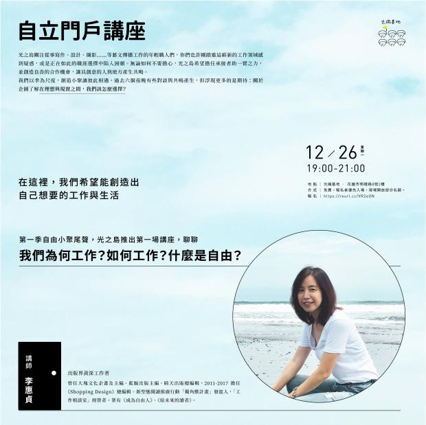 我們為何工作?如何工作?什麼是自由? 講者|李惠貞 2022/12/26 自由是什麼? 來到這場自由小聚的人們,與惠貞一樣都是對自由抱持著嚮往的。在撰寫《...